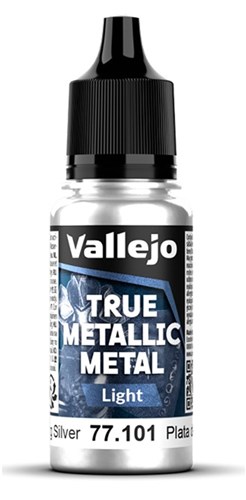 Vallejo TMM (True Metallic Metal) serien er specielt udviklet akrylmaling til model- og miniaturemaleri. De lyse farver er udviklet til at fremhæve basisfarverne og skabe højdepunkter og bløde overgange, og er det sidste trin i Base-Shade-Light systemet. Malingen indeholder ultrafine metalpigmenter, der skaber en realistisk metallisk effekt med naturlig refleksion og metallisk glans. Til dem, der ønsker metaloverflader med et autentisk udtryk.
