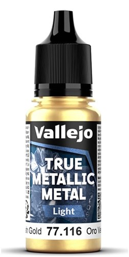 Vallejo TMM (True Metallic Metal) serien er specielt udviklet akrylmaling til model- og miniaturemaleri. De lyse farver er udviklet til at fremhæve basisfarverne og skabe højdepunkter og bløde overgange, og er det sidste trin i Base-Shade-Light systemet. Malingen indeholder ultrafine metalpigmenter, der skaber en realistisk metallisk effekt med naturlig refleksion og metallisk glans. Til dem, der ønsker metaloverflader med et autentisk udtryk.