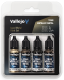 Vallejo TMM (True Metallic Metal) 4-pak er en akrylmaling udviklet til model- og miniaturemaling med pensel og airbrush. Sættet indeholder fire kromatisk matchede metalliske farver - Base, Shade, Light og Airbrush. Farverne er udviklet inden for BSL-systemet og giver en glat finish, god dækning og ensartede resultater på metaloverflader. Malingen er klar til brug direkte fra flasken, men kan fortyndes med Airbrush Thinner for mere subtile effekter.