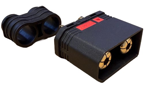 Stikket, der normalt bruges på regulatorsiden af et stik. Dette er et kraftigt 8 mm stik designet til større opsætninger. Leveres med en praktisk stikhætte, der klikkes på plads for at beskytte stikket, efter det er loddet, hvilket eliminerer behovet for krympefolie.