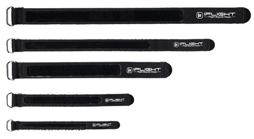 iFlight Polyester Batteristropp 20x400mm (5) sort. Kommer med silikonbelegg for godt grep og stabil montering. Kevlar-søm gir økt slitestyrke, mens borrelås i nylon og spenne i sink legering sørger for sikker og rask stramming uten ekstra vekt.