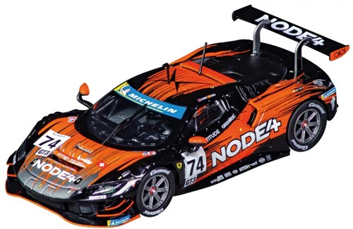 Ferrari 296 GT3 "Kessel Racing, No.74". Digital bilbanebil i 1:32 skala, kan brukes på Carrera digitale bilbaner. Perfekt for deg som vil bringe ekte Ferrari-racing til Carrera Evolution. Modellen kommer også med funksjonelle lys foran og bak!