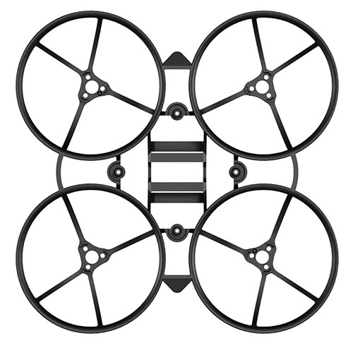 Rammen er lavet af PP-materiale, der er designet til at modstå gentagne stød og belastninger. Den optimerede struktur bidrager til reduceret vibration og stabil flyvning. Rammen er udstyret med en lavere kanalprofil, motorbeslag, motorskruebeskyttelse og forstørrede monteringshuller til flycontrolleren (25,5 × 25,5 mm).