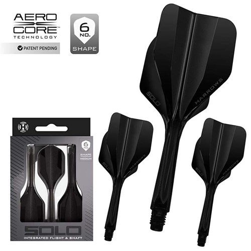 Harrows Solo er flights og bakstykker støpt i én solid del - utviklet for presis flyvebane og maksimal holdbarhet. Harrows Solo er flighten for spillere som krever stabilitet i hvert kast. Solo kombinerer smart aerodynamikk med en svært robust konstruksjon og sørger for jevne resultater, gang på gang. Aero Core-teknologien er inspirert av undersiden på flyvinger, men mål om mindre luftmotstand og mer stabilitet i kastet. Den strukturerte kjernen gir kontroll, mens de glatte vingene gir maksimal fart og presisjon.