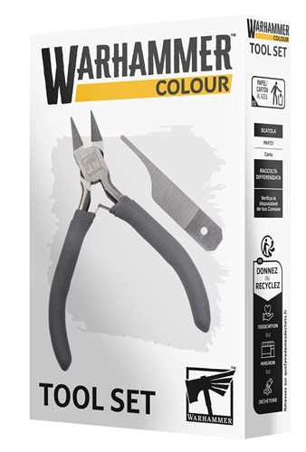 Warhammer farveværktøjssæt. Warhammer farveværktøjssættet giver dig det grundlæggende værktøjssæt, du har brug for til at skære løse dele og fjerne støbekanter, før du samler miniaturefigurer. Nemt at bruge og designet med praktiske detaljer - et solidt udgangspunkt for nye hobbybyggere.