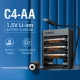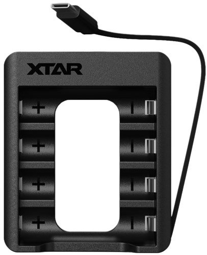 Xtar C4 er en AA (1,5V) hurtigoplader med mulighed for at oplade 4 battericeller samtidigt med 0,5A. Leveres med et integreret USB-C-kabel.