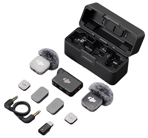 2 x DJI Mic Mini 2 Transmitter1 x DJI Mic Mini Receiver1 x DJI Mic Mini Charging Case 2 x DJI Mic Mini 2 Windscreen (Black/Gray)2 x DJI Mic Mini 2 Magnetic Front Cover (Obsidian Black)2 x DJI Mic Mini 2 Magnetic Front Cover (Glaze White)2 x DJI Mic Mini 2 Magnetic Clip2 x DJI Mic 3 Magnet1 x DJI Mic Mini Compact Carrying Pouch1 x DJI Mic Mini Mobile Phone Adapter (USB-C)1 x DJI Mic Mini Camera Audio Cable (3.5mm TRS)1 x DJI Mic USB-C Charging Cable