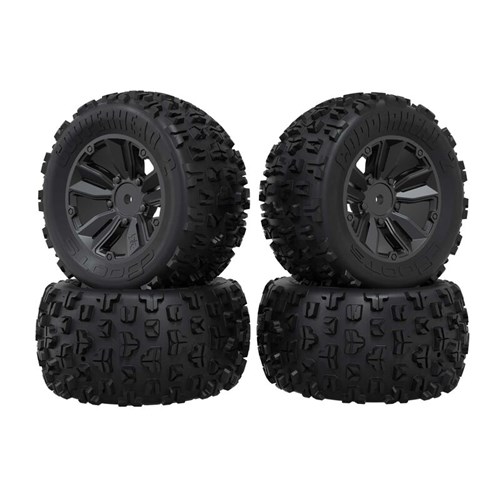Pakke med 4stk dekk, ferdiglimt på felg. Dekkene passer Arrma Mini Kraton 1/16 skala.